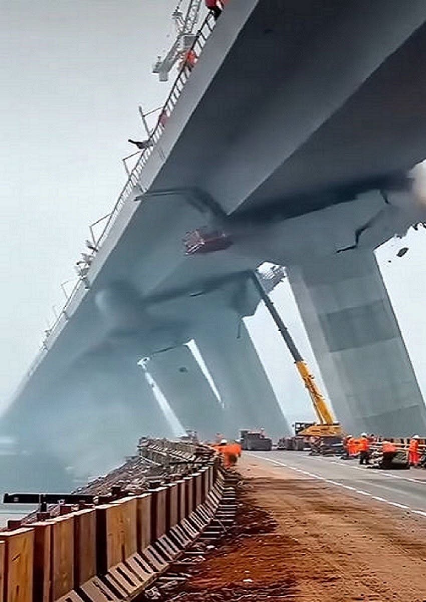 Dev bir yatırım projesi olarak tanıtılan köprü inşaatında akşam saatlerinde