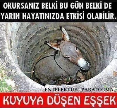 Eşek, sırtına düşen her kürek toprakla müthiş bir şey yapmakta, toprağı aşağıya silke leyerek yukarı çıkmasına basamak hazırlamaktadır. Bir süre sonra, komşular toprak atmaya devam edince, herkesin şaşkınlığı altında eşek, kuyunun kenarından dışarı bir adım atıp, koşarak uzaklaşır! Hayat üzerinize hep toprak atacaktır; her türlü pislik ile.Kuyudan çıkmanın sırrı, bu pisliği silkeleyip bir adım yükselmektir. Sıkıntılarımızın her biri bir adımdır. En derin kuyulardan bile yılmayarak, usanmayarak çıkabiliriz.Silkelenin ve biraz daha yukarı çıkın. Mutluluğun 5 basit kuralını unutmayınız: 1. Kalbinizi nefretten arındırın – Affedin. 2. Düşüncelerinizi endişelerinizden arındırın – Çoğu zaten hiç gerçekleşmez. 3. Basit yaşayın ve elinizdekilerin kıymetini bilin. 4. Daha çok verin. 5. Daha az bekleyin..