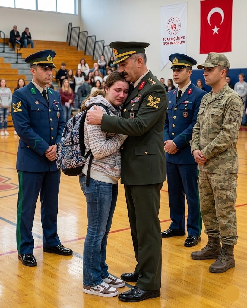 Diğer bir asker, katlanmış bir bayrakla öne çıktı. Şöyle dedi: “Bu nişan yıllar önce onaylanmıştı ancak operasyon sonrası incelemelerdeki bir bürokratik hata nedeniyle resmi olarak takdim edilemedi. Ben bu hatanın düzeltilmesine yardımcı olmakla görevlendirildim. Dün bu okulda yaşananları duyduğumuzda, bunu burada yapıp yapamayacağımızı sorduk.”