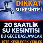 - Yetkililerden gelen açıklamaların ardından AFAD ile ilgili resmi kurumlar, belirli il ve ilçelerde yarıntan itibaren 24 saat içinde planlı su kesintisi yapılacağını duyurdu. Bu kesintiler özellikle altyapı yenileme, bakım, onarım ve acil müdahale çalışmaları kapsamında gerçekleştirilecek. Kesintiden etkilenecek bölgelerde yaşayan vatandaşların hazırlıklı olması için aşağıdaki detaylara dikkat edilmesi öneriliyor:Kesilecek il ilçe ve mahallere şu şekilde…